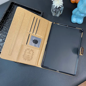 Leather Monogram iPad Case with small printing offers refined elegance and robust protection, designed to enhance your device’s style and usability.